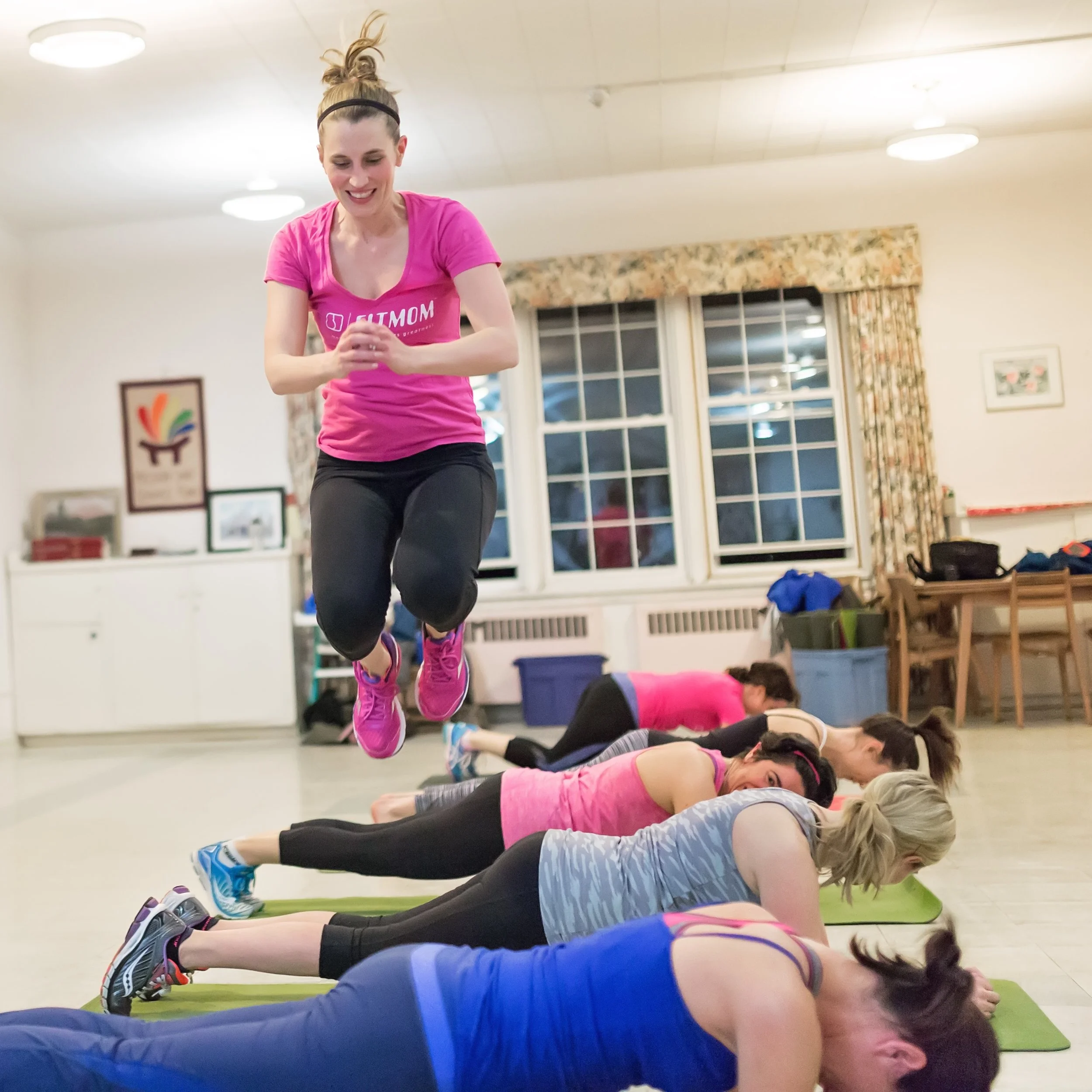 FITWOMAN classes are a challenging workout for ALL women, whether you’ve just had a baby or your “baby” was born 10 or more years ago. This quick paced class works to maximize your metabolism by combining many different strength and cardio exercises suitable for all levels of fitness. You can expect to increase lean muscle, improve cardiovascular endurance and reduce stress through a combination of intervals, circuits, plyometrics, strength training and great music all delivered in the signature FITMOM style!